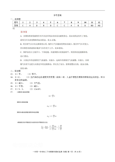 李哥物理八下周练卷(六)
