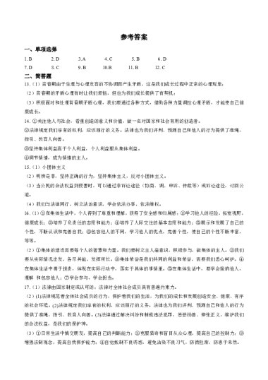 转载请注明出处: 名校卷 » 2020-2021-2青竹湖湘一外国语学校初一期末道德与法治试卷(含答案)