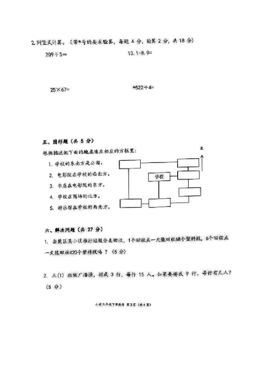 2021-2022-2岳麓二小三年级期末数学试卷(无答案)