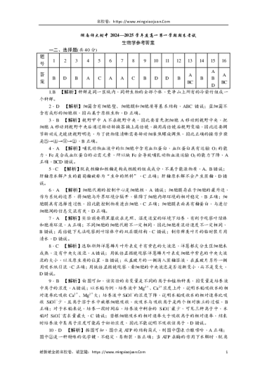 转载请注明出处: 名校卷 » 湖南师大附中2024-2025学年度高一第一学期期末考试生物学参考答案