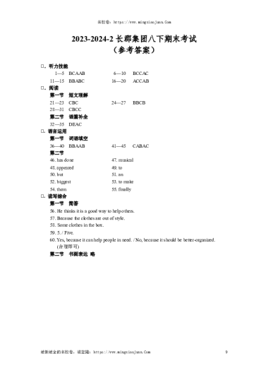 转载请注明出处: 名校卷 » 2023-2024-2长郡集团八下期末考试英语