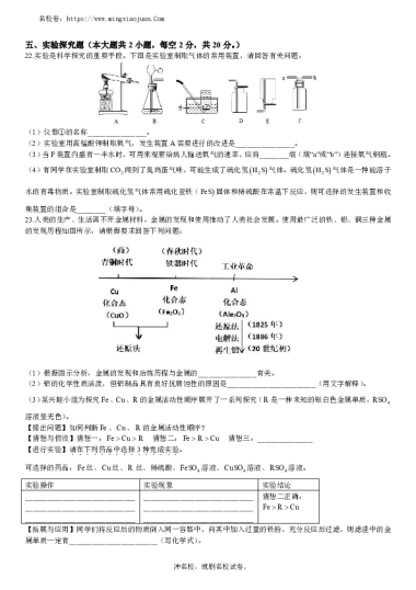转载请注明出处: 名校卷 » 2022-2023-1附中集团初三期末考试化学试卷(2月)