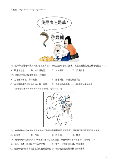 转载请注明出处: 名校卷 » 湖南长沙卷B-2023年中考地理模拟考场仿真演练卷(原卷版)