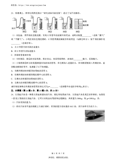 转载请注明出处: 名校卷 » 附中集团2022-2023学年度八年级第二次质量检测物理试题