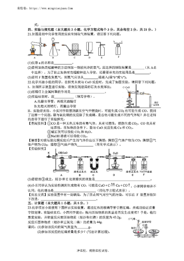 转载请注明出处: 名校卷 » 2024-2025-1雅礼九年级上【化学】第三次月考(含答案)