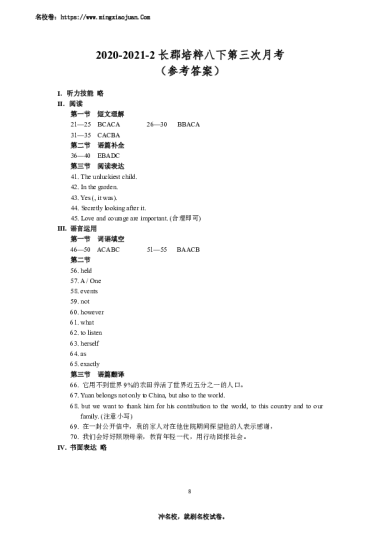 2020-2021-2湘郡培粹实验中学初二第三次月考英语试卷(含答案)