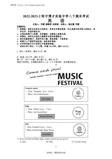 转载请注明出处: 名校卷 » 2022-2023-2师大附中博才实验中学初二期末英语试卷(含答案)