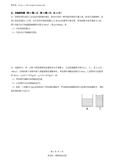 转载请注明出处: 名校卷 » 长郡外国语实验中学2022-2023学年度初二下学期第一次限时训练物理
