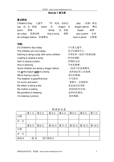 转载请注明出处: 名校卷 » 外研版麓山国际实际小学二年级下册英语Module7复习单