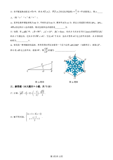 转载请注明出处: 名校卷 » 2024年华益中学中考三模数学试卷(含答案)