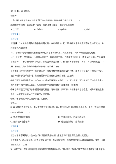 2023年湖南省长沙市中考生物真题(解析卷)