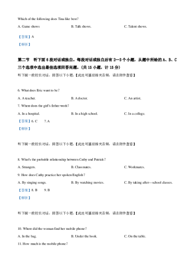 部分试卷无答案,有答案一般在试卷的末尾,也有部份答案会独立在下方下载位置提供下载。