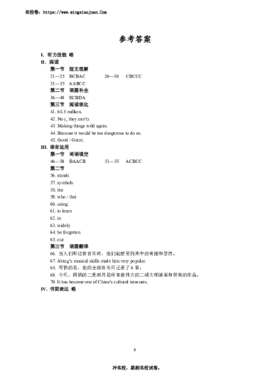 部分试卷无答案,有答案一般在试卷的末尾,也有部份答案会独立在下方下载位置提供下载。