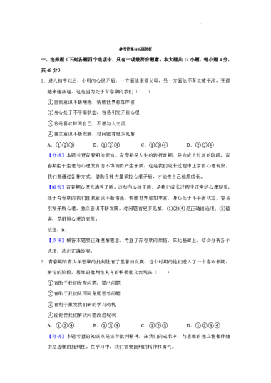 转载请注明出处: 名校卷 » 湖南省长沙市开福区清水塘实验学校2021-2022学年七年级下学期期中道德与法治试卷