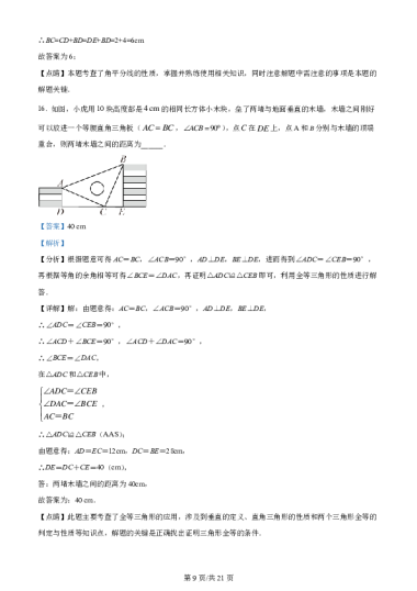 转载请注明出处: 名校卷 » 精品解析:湖南省长沙市湖南广益实验中学2022-2023学年八年级上学期入学考试数学试题(解析版)