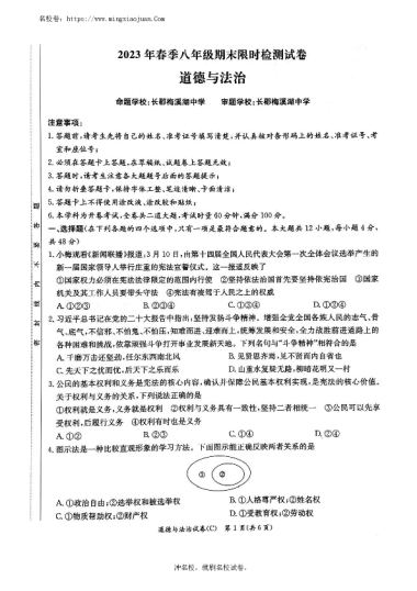 转载请注明出处: 名校卷 » 2022-2023-2长郡教育集团初二期末道德与法治试卷(含答案)