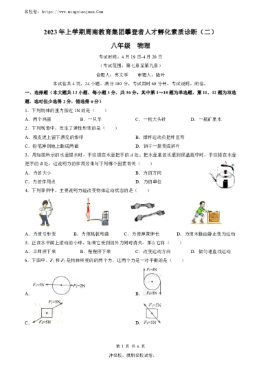 2023年上学期周南教育集团攀登者人才孵化素质诊断(二)八年级物理