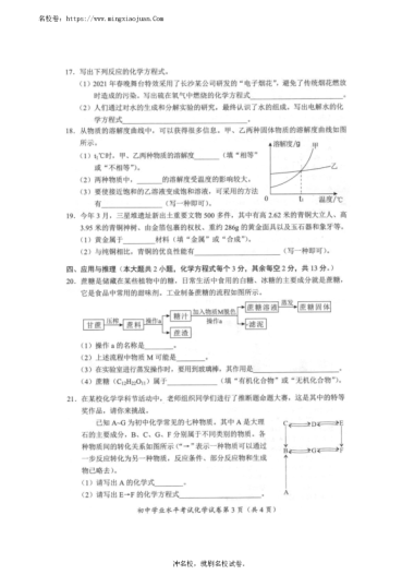 转载请注明出处: 名校卷 » 2021年长沙中考化学真题试卷(含答案)