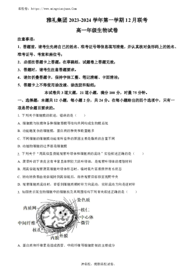 转载请注明出处: 名校卷 » 雅礼集团2023-2024学年第一学期12月联考高一年级生物试卷