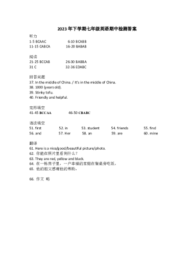 转载请注明出处: 名校卷 » 2023-2024-1雅礼教育集团初一期中英语试卷(含答案)