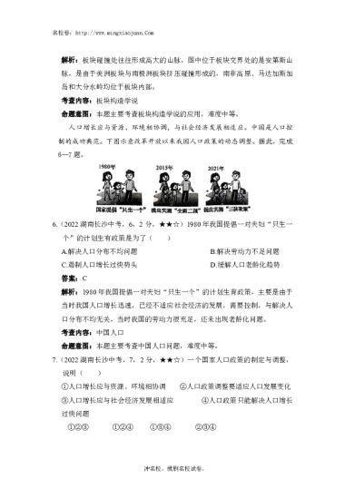 转载请注明出处: 名校卷 » 2022年长沙市初中学业水平考试试卷地理-解析