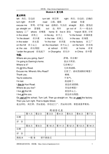 转载请注明出处: 名校卷 » 外研版麓山国际实际小学二年级下册英语Module9复习单重点单词: