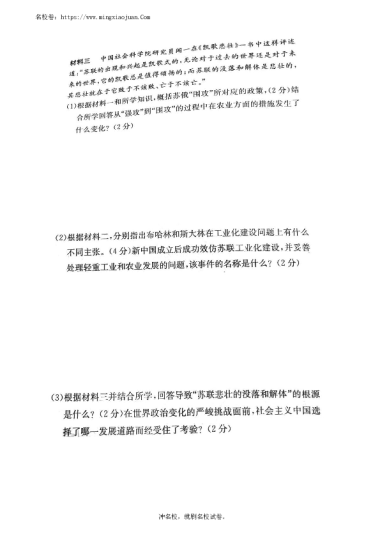 转载请注明出处: 名校卷 » 2022-2023-1长郡教育集团初三期末考试历史试卷(含答案)