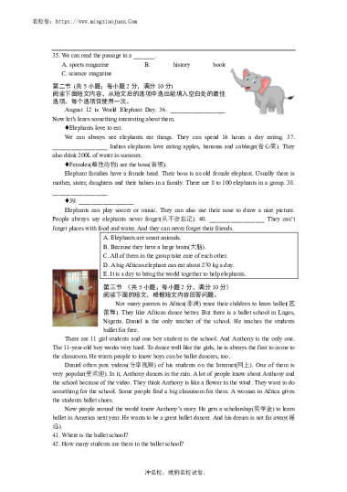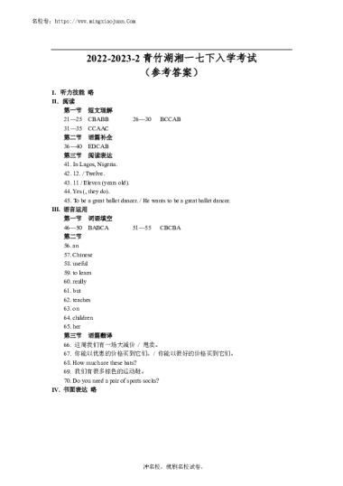 转载请注明出处: 名校卷 » 英语试卷+答案2023青竹湖湘一七下入学考试英语