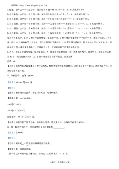 转载请注明出处: 名校卷 » 23.11数学郡外2023-2024九上第三次月考卷答案