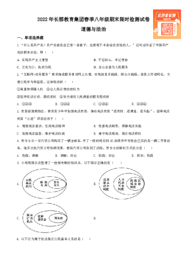 转载请注明出处: 名校卷 » 2021-2022-2长郡教育集团初二期末道德与法治试卷(含答案)