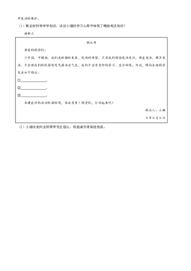 2021-2022-2长郡教育集团初二期末道德与法治试卷(含答案)