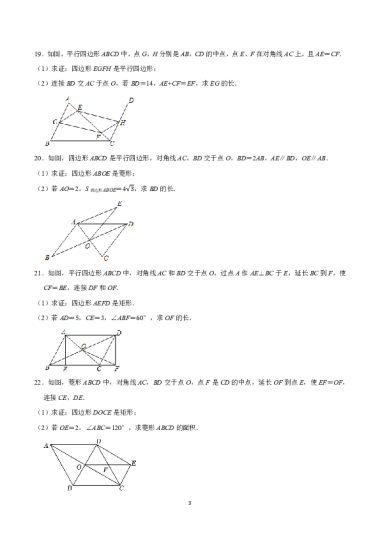 转载请注明出处: 名校卷 » 八年级下册期中平行四边形复习卷(含答案)