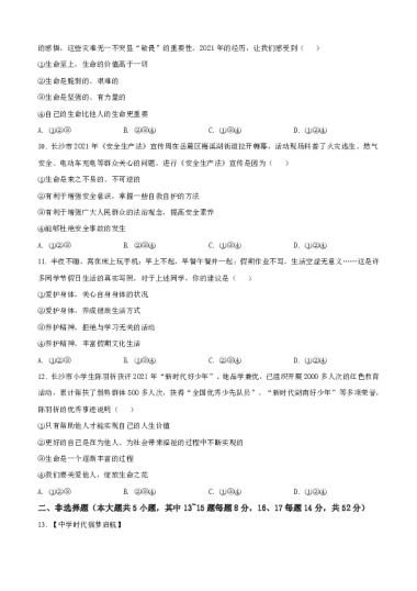 转载请注明出处: 名校卷 » 【1政治】雅礼教育集团2021-2022学年七年级上学期期末道德与法治试题