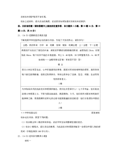 2016年湖南省长沙市中考道德与法治真题(空白卷)