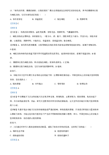 转载请注明出处: 名校卷 » 2022年湖南省长沙市中考生物真题(解析卷)