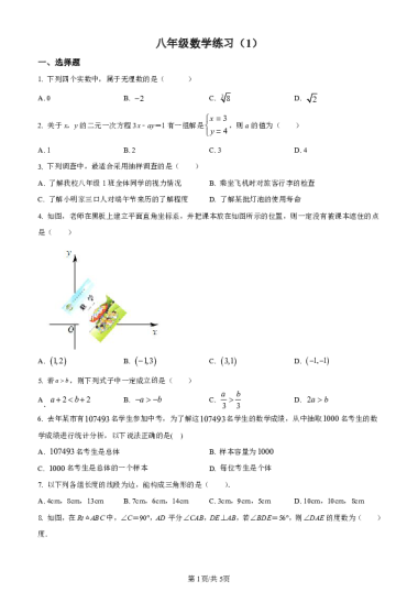 广益实验中学【试卷】2022-2023学年八年级上学期入学考试数学试题