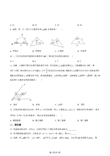 转载请注明出处: 名校卷 » 广益实验中学【试卷】2022-2023学年八年级上学期入学考试数学试题