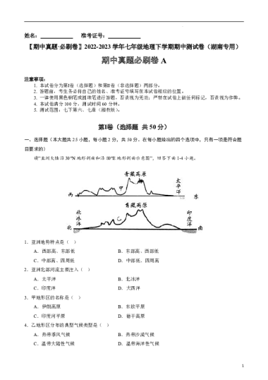 转载请注明出处: 名校卷 » 2022-2023学年七年级地理下学期期中测试卷(湖南专用)(解析版)