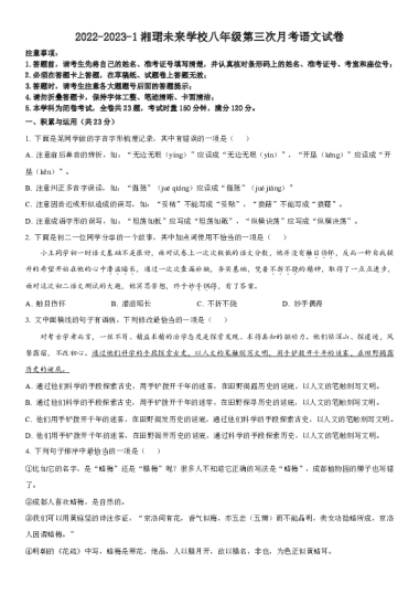 2022-2023-1湘珺未来学校初二第三次月考语文试卷(含答案)