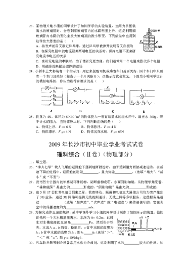 转载请注明出处: 名校卷 » 2009年湖南省长沙市中考物理真题及答案