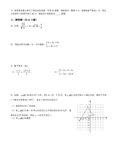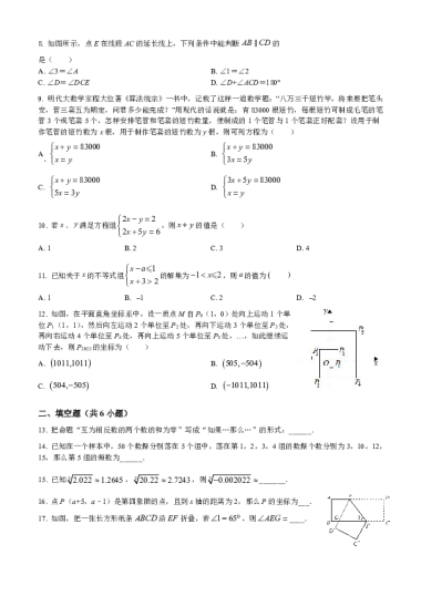 转载请注明出处: 名校卷 » 2021-2022-2长郡教育集团初一期末数学试卷(含答案)[20230607-print-1]