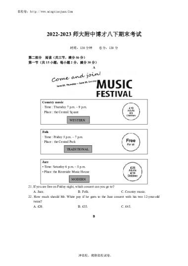 转载请注明出处: 名校卷 » 长沙2022-2023师大附中博才八下期末考试英语