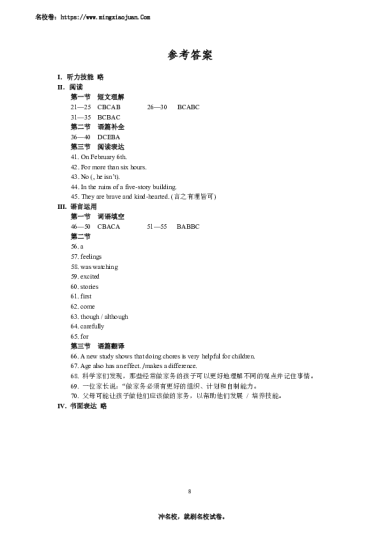 部分试卷无答案,有答案一般在试卷的末尾,也有部份答案会独立在下方下载位置提供下载。