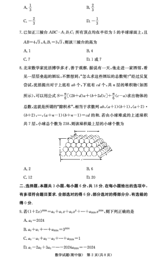 转载请注明出处: 名校卷 » 湖南师大附中2025届高三月考试卷(三)数学试卷(附中高三3次)