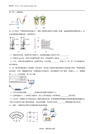 转载请注明出处: 名校卷 » 长沙2023年秋季长郡集团九年级期中限时检测试卷物理