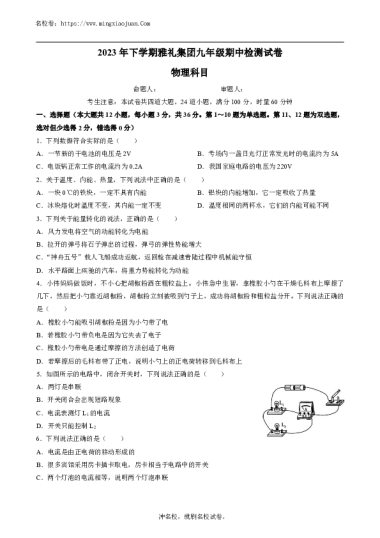 2023-2024-1雅礼集团九上期中联考物理试卷(教师版)