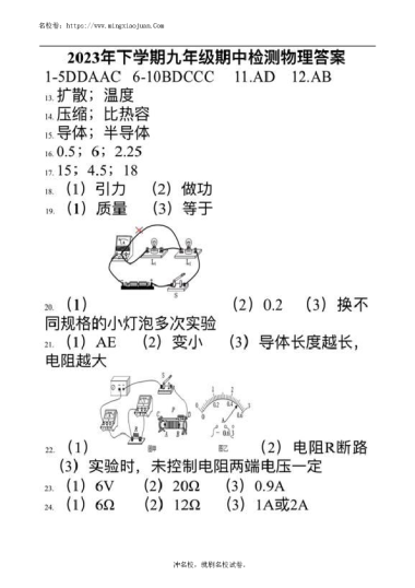 转载请注明出处: 名校卷 » 2023-2024-1雅礼集团九上期中联考物理试卷(教师版)