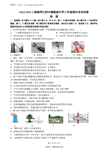 2022-2023-2湖南师大附中梅溪湖中学八年级期末考试试卷物理