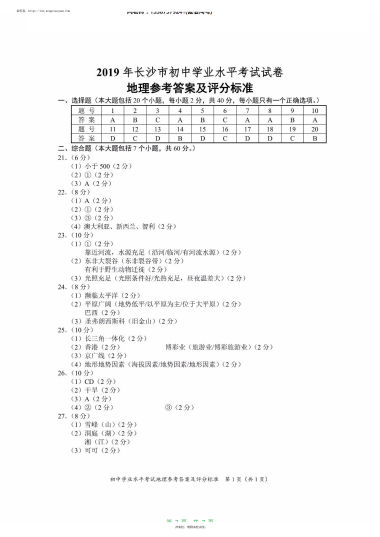 转载请注明出处: 名校卷 » 2019年长沙中考地理试卷及答案