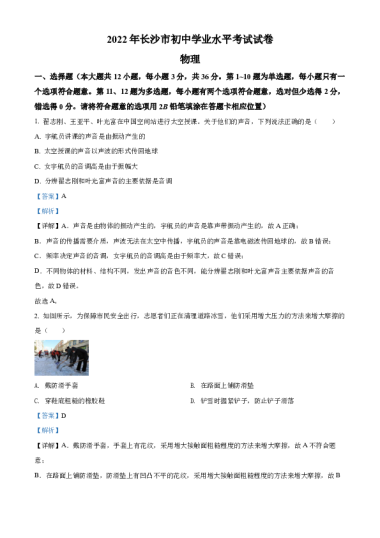 转载请注明出处: 名校卷 » 2022年湖南省长沙市中考物理真题(解析卷)